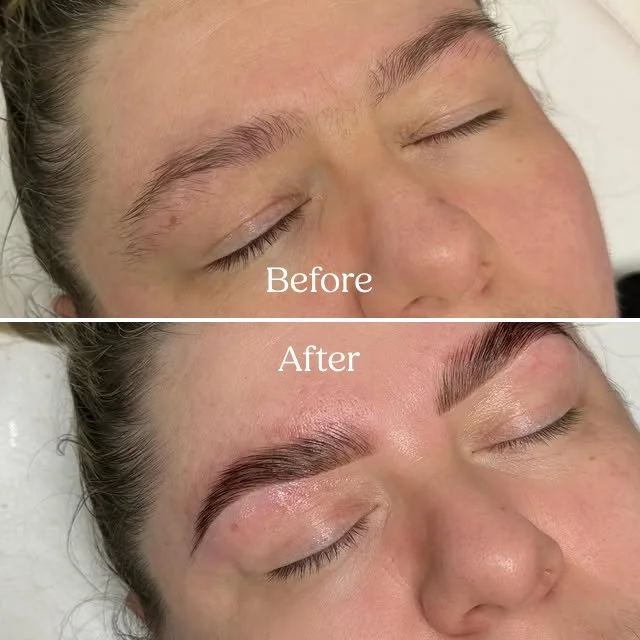 Henna brows are a type of tinting that stains the skin giving you tinted hairs for up to 6 weeks, and a tint on the skin that can last anywhere from 3-10 days. It's a fantastic way to try out a shape before committing to semi-permanent makeup.